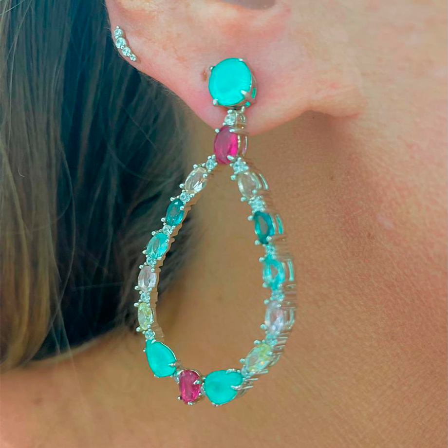 Seja o primeiro a avaliar “Brinco arco color Prata 925, banho ródio branco”