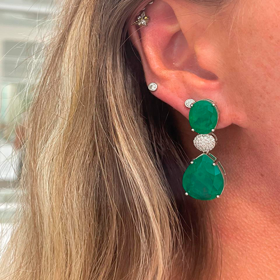 Brinco na Prata 925 com banho ródio branco com círculo redondo cravejado.