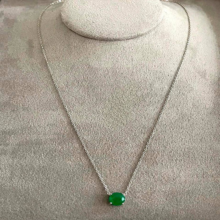 Colar Ponto luz Esmeralda Fusion Banho rodio branco 2g